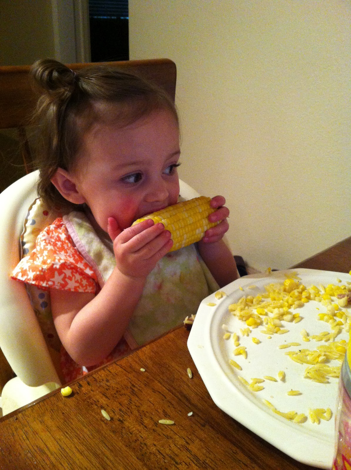 it” and Saturday she wanted to eat corn on the cob, on the cob. (I had been